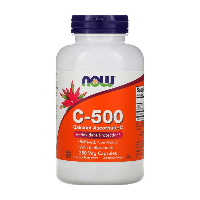 C-500 Calcium Ascorbate-C от NOW разработан на основе аскорбата кальция. Это соединение витамина С и карбоната кальция. В подобной комбинации витамин С лучше усваивается и не вызывает раздражения слизистой ЖКТ. В итоге вы получаете двойную пользу и снабжаете себя одновременно витамином С и кальцием. Витамин С повысит защитные свойства вашего организма и поддержит прочность кровеносных сосудов. Кальций укрепит кости и зубы, поддержит работу мышц и передачу нервных импульсов.