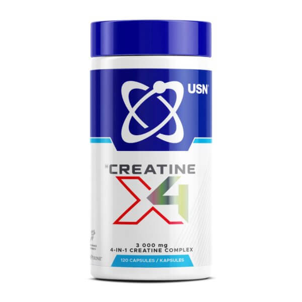 Креатин X4 (Crea-X4 от USN) — это капсулы с сочетанием четырёх форм креатина и поддерживающих компонентов для силы, мощности и восстановления. Одна порция содержит креатин HCl, креатин нитрат, креатин этилэфир HCl и креатин моногидрат — формы с разной растворимостью и путями транспорта. Формула дополнена глицином и таурином, а также магнием, бета-аланином и альфа-липойевой кислотой; BioPerine помогает улучшить усвоение. Формат капсул удобен тем, кто не любит порошки: 4 капсулы = 1 порция, легко взять с собой и точно дозировать. Подходит для высокоинтенсивных тренировок и циклов на силу; рекомендуется поддерживать достаточное питьё в дни приёма. Продукт разработан USN и ориентирован на стабильный прирост рабочих весов при регулярном использовании.